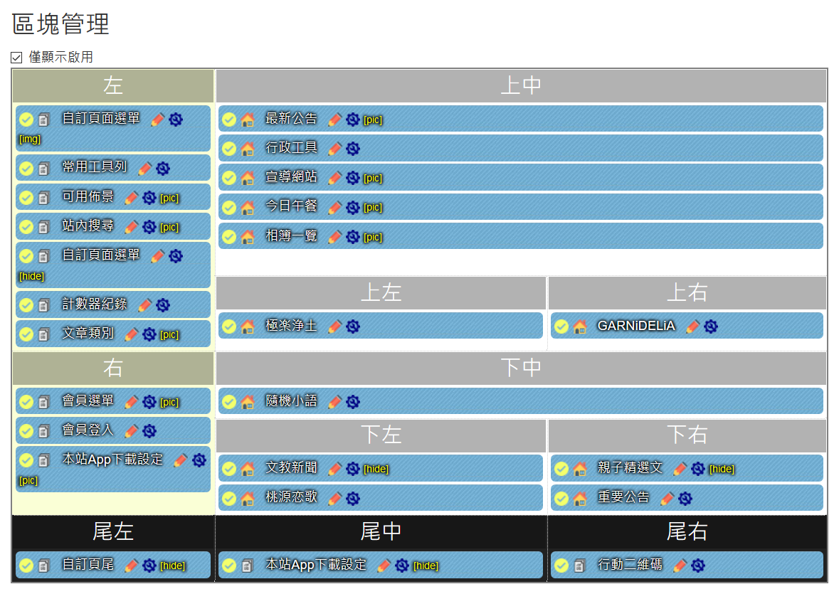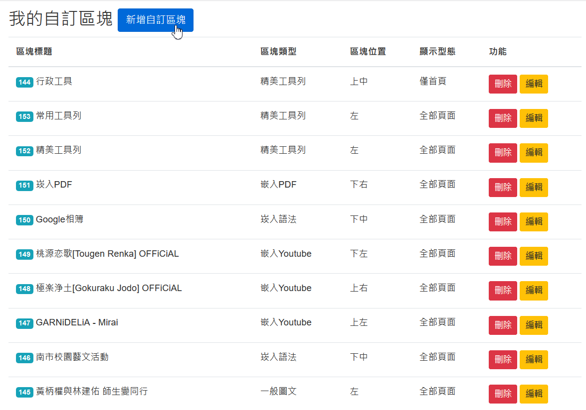 - 自訂區塊列表改以實際區塊名稱、位置及排序來顯示
