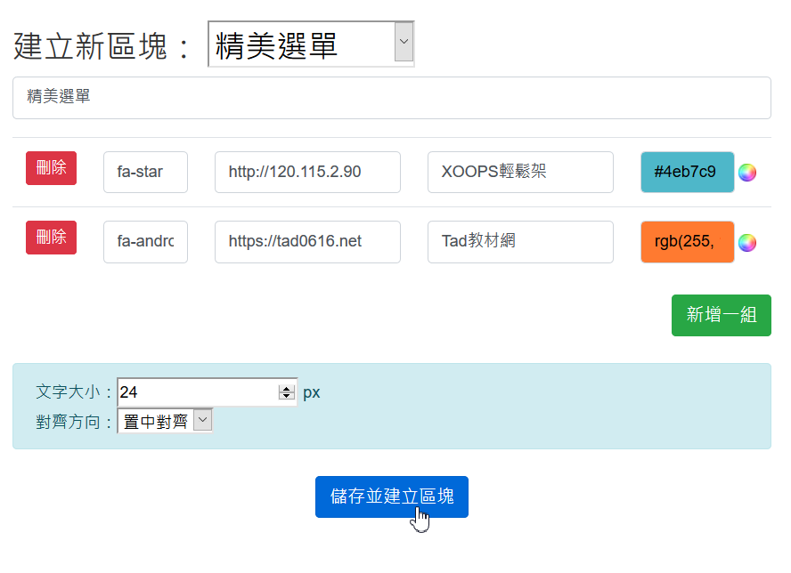 - 「一般連結」、「跑馬燈」、「精美工具列」、「精美選單」加入排序功能